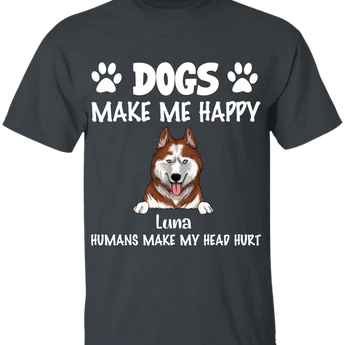 Make Me Happy, Humans Make My Head Hurt, Dog Lover, Personalized T-shirt Sweatshirt Dark