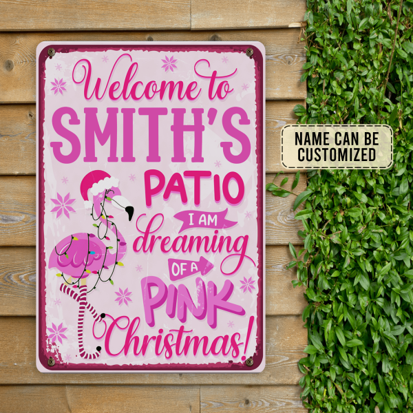 Welcome To Patio, I Am Dreaming Of A Pink Christmas - Personalized Metal Sign