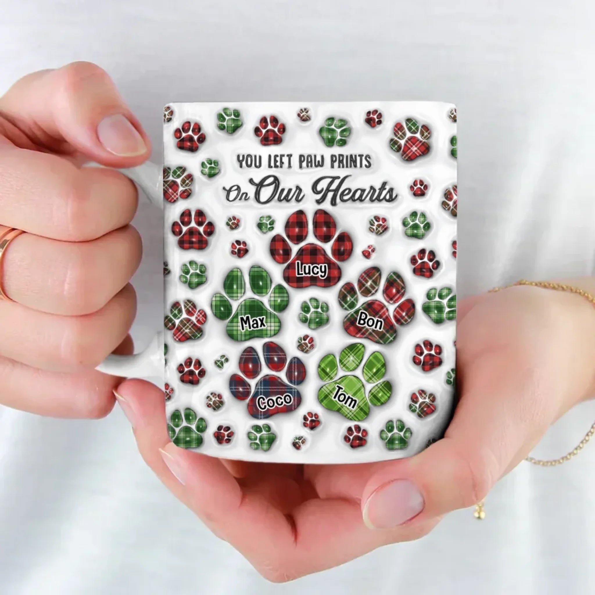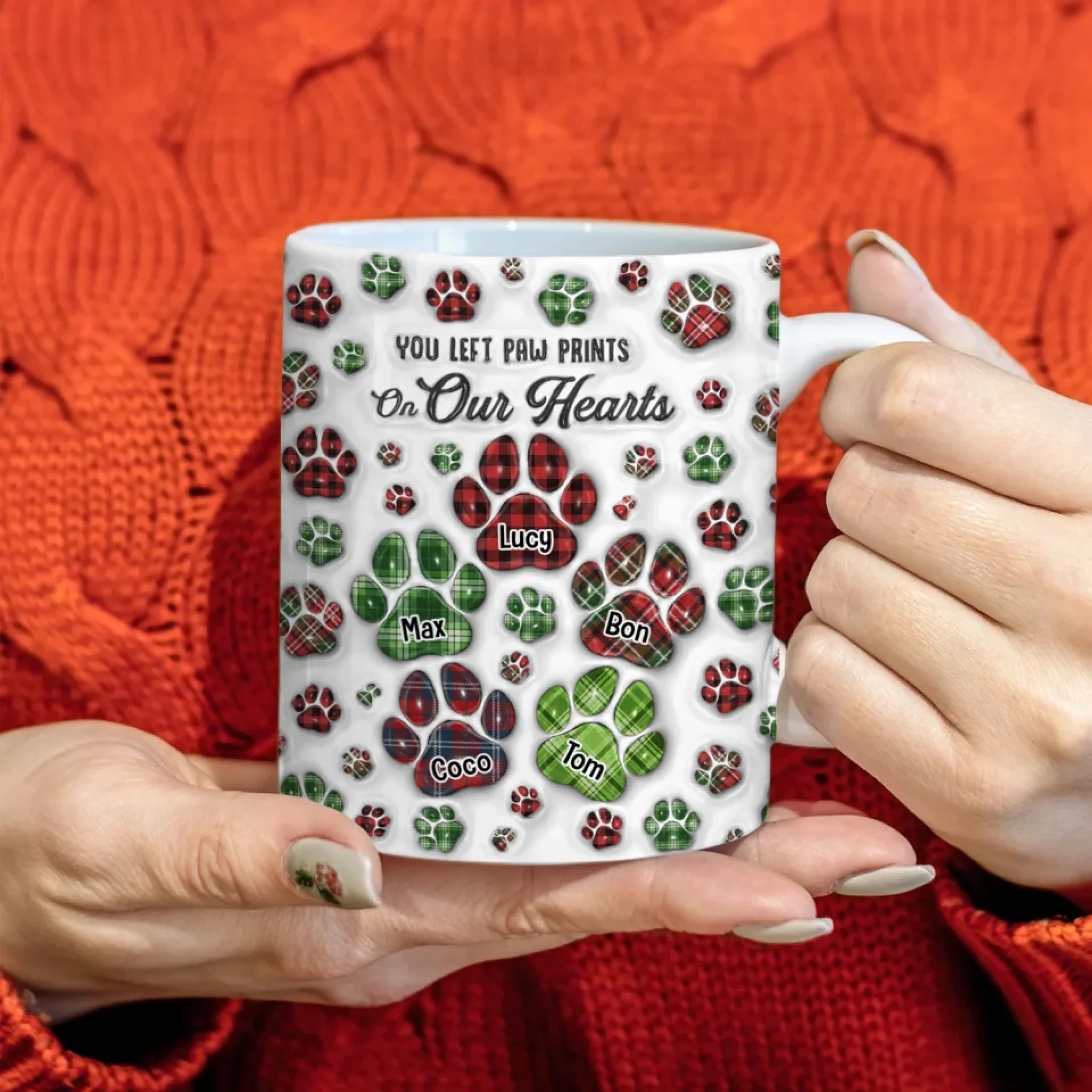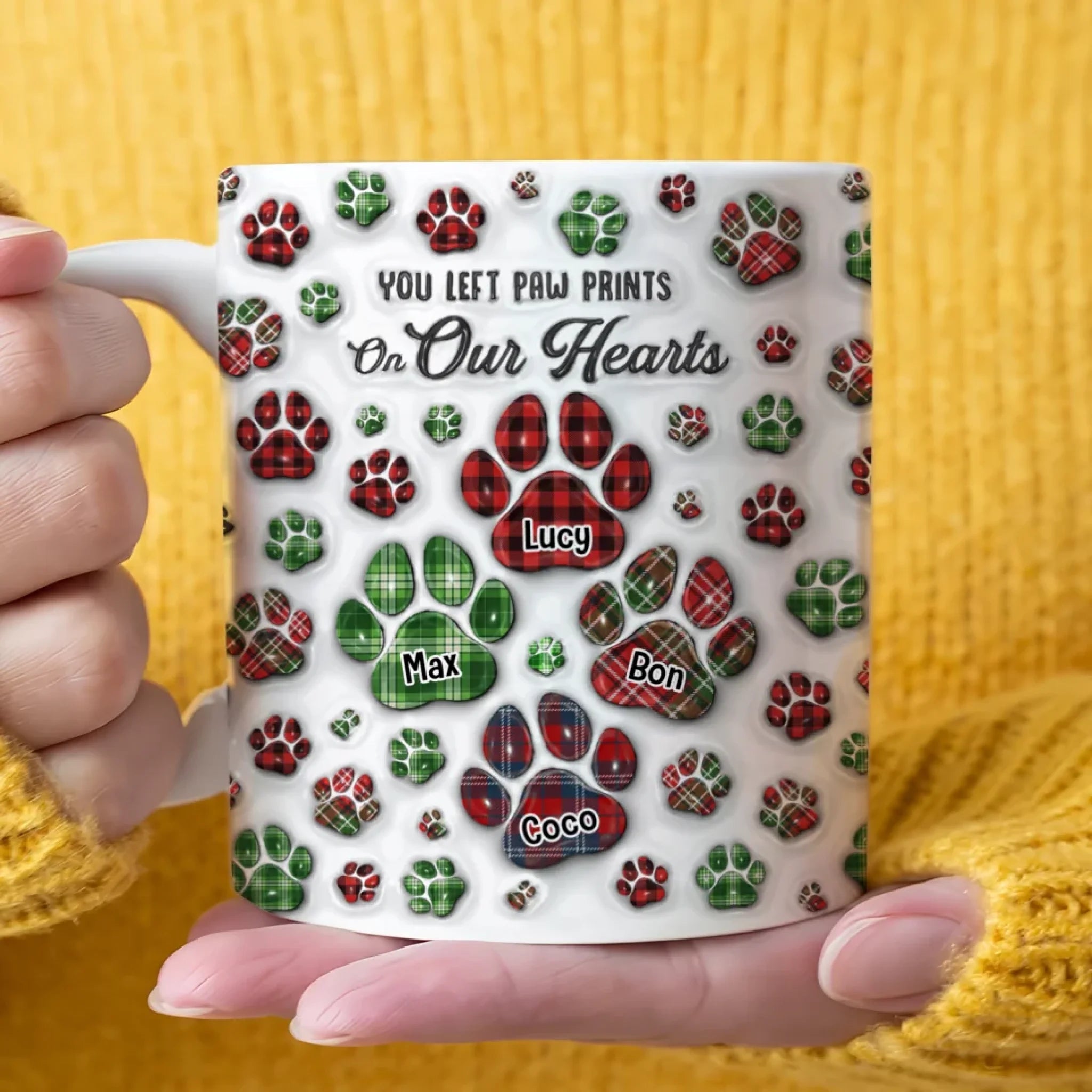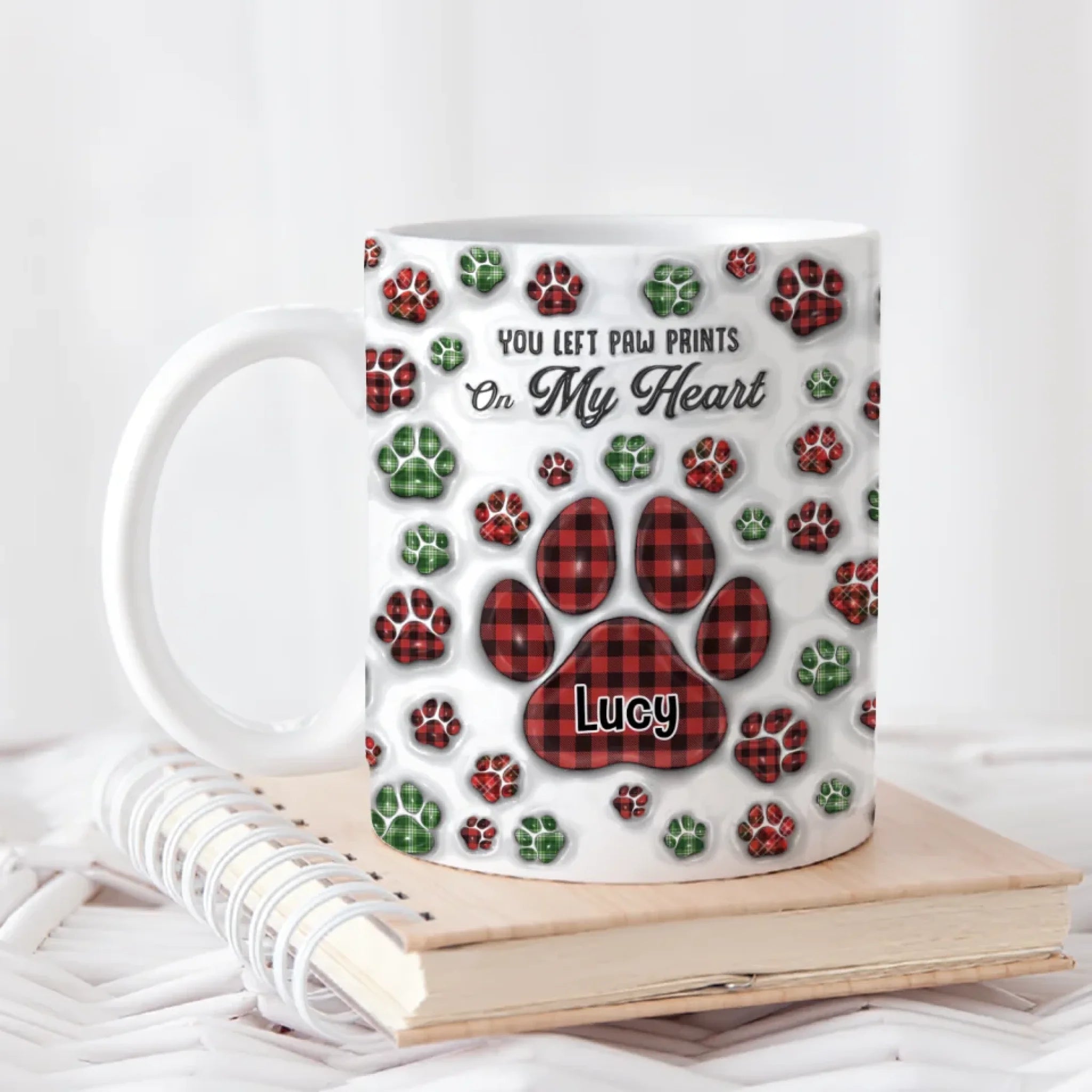 Pet You Left Pawprints On My Heart - Personalized 3D Inflated Effect Mug, Gift For Dog Lovers, Memorial Pet