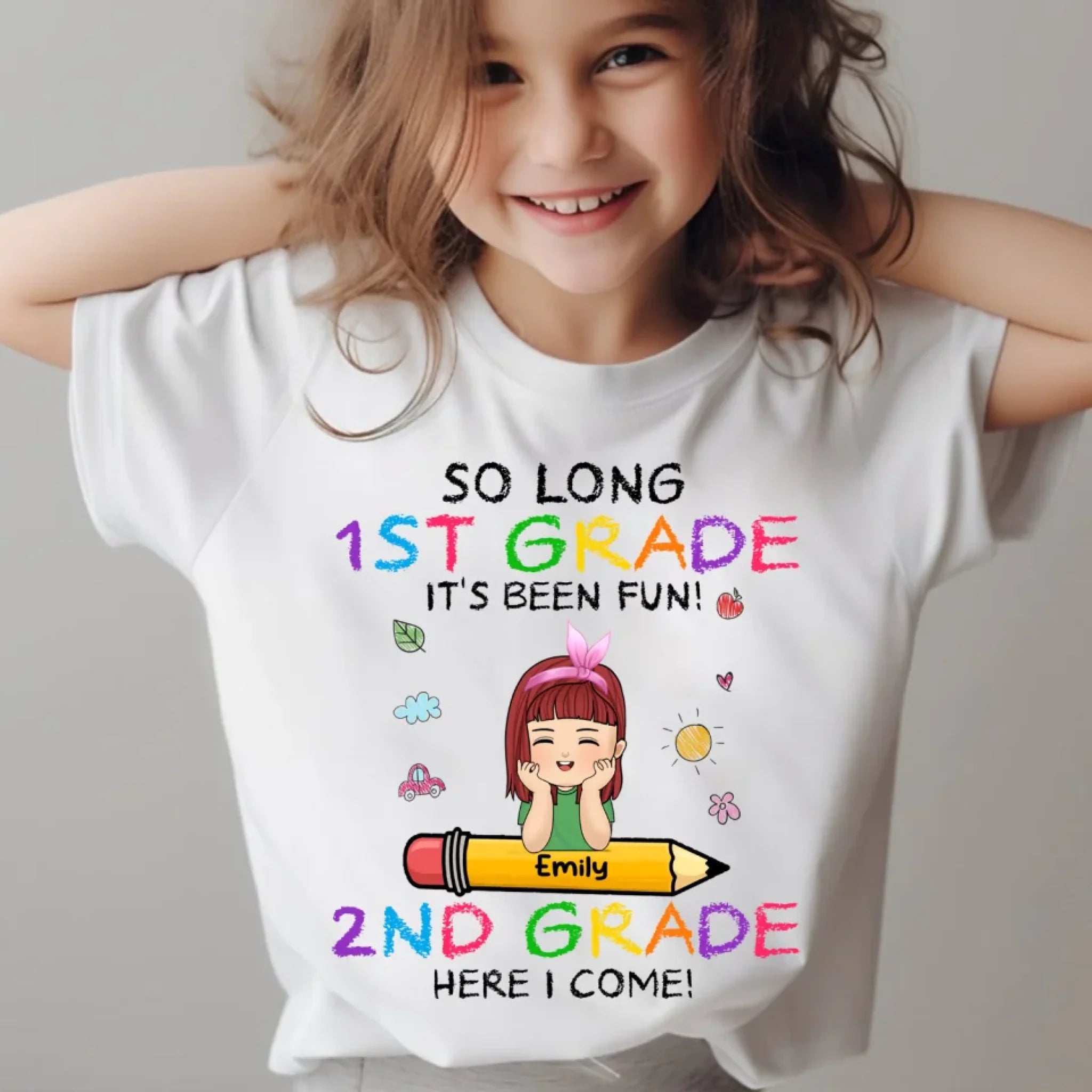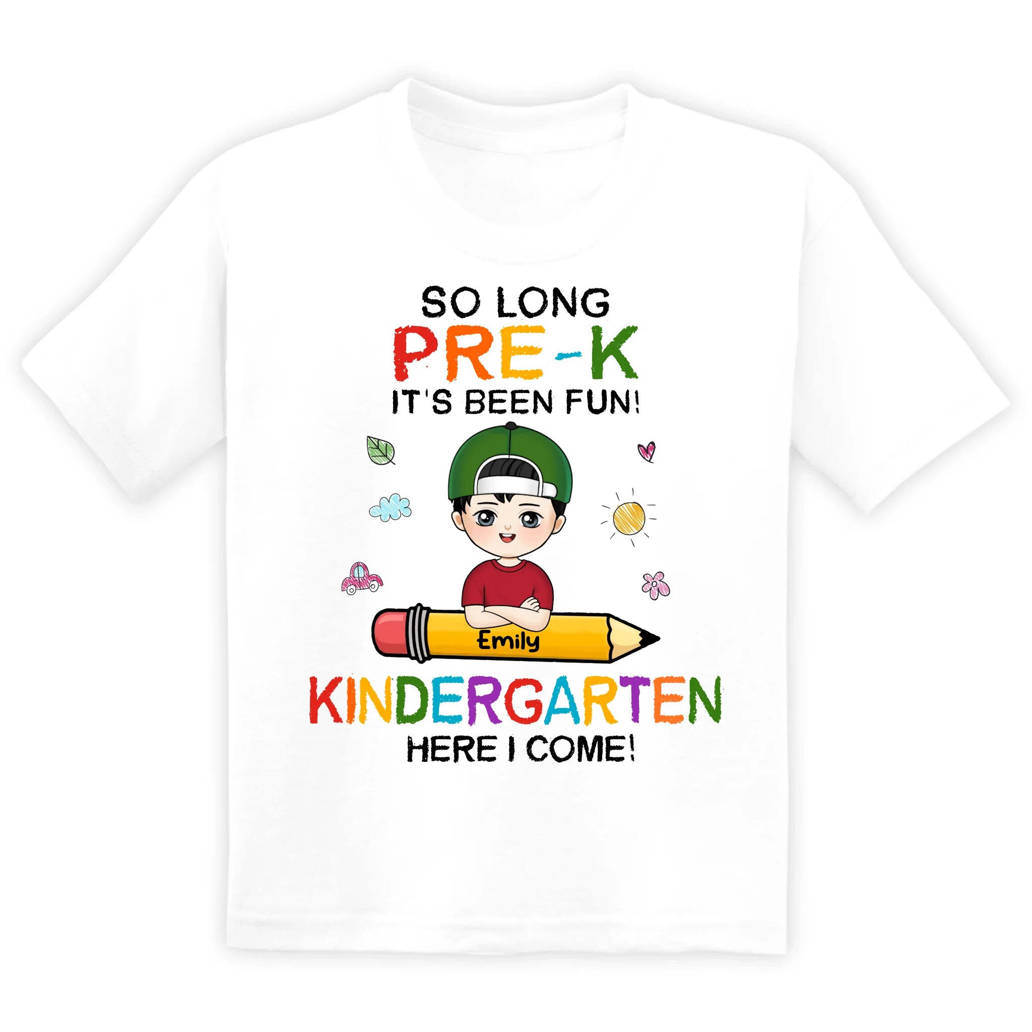 So Long Pre-K It's Been Fun - Personalized T-Shirt, 2025 Graduation Gift for Kids, Pre-K/Kindergarten/Primary School Grad Shirt