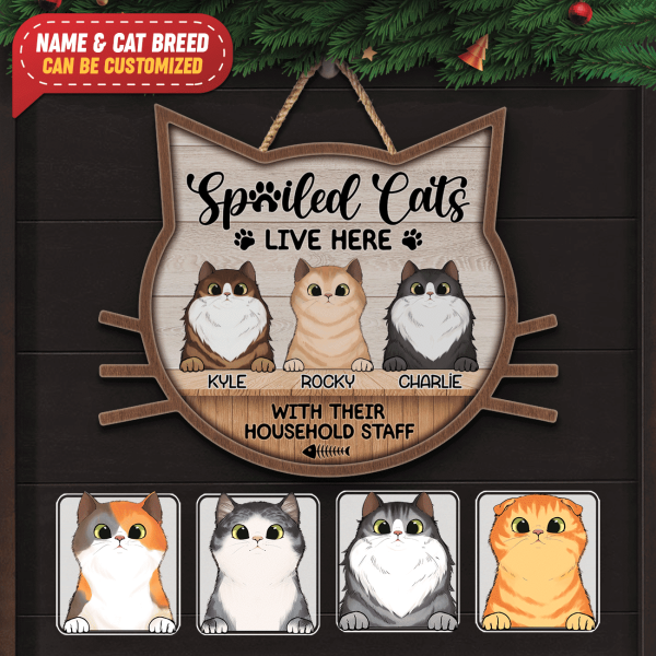Spoiled Cats Live Here With Their Household Staff Personalized Shaped Wooden Door Sign