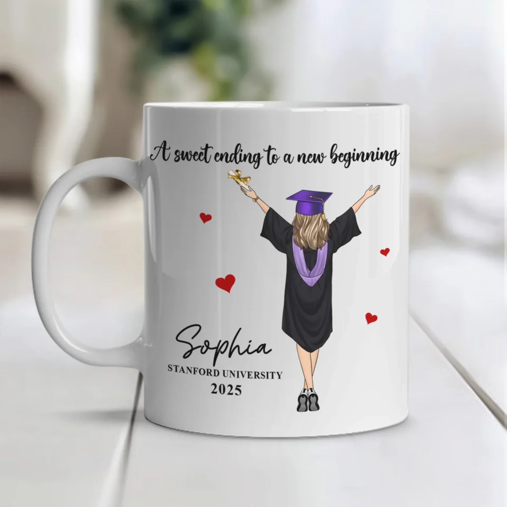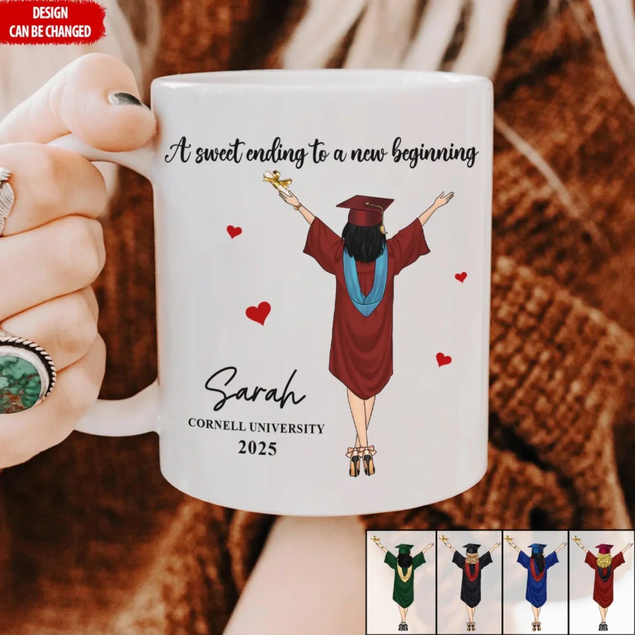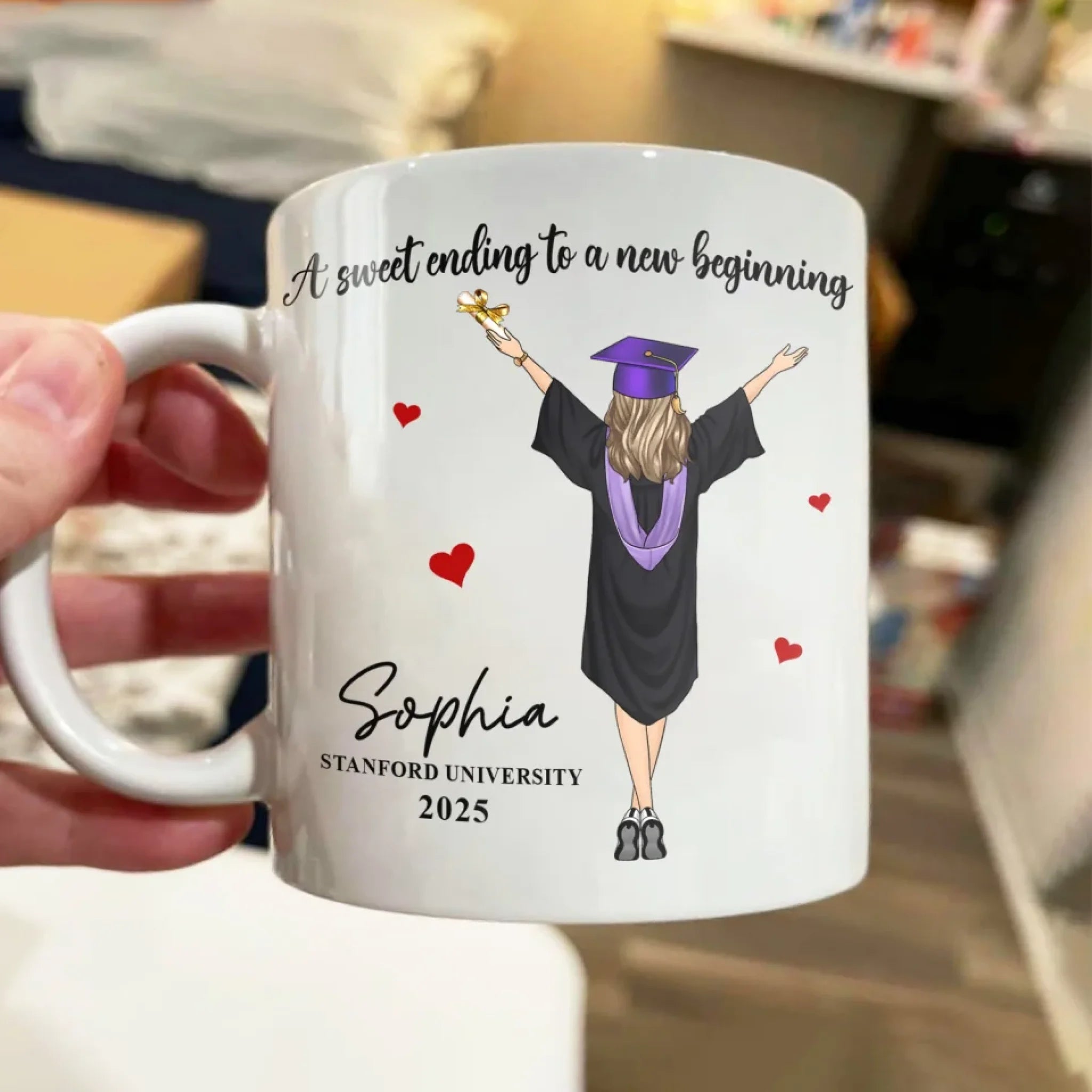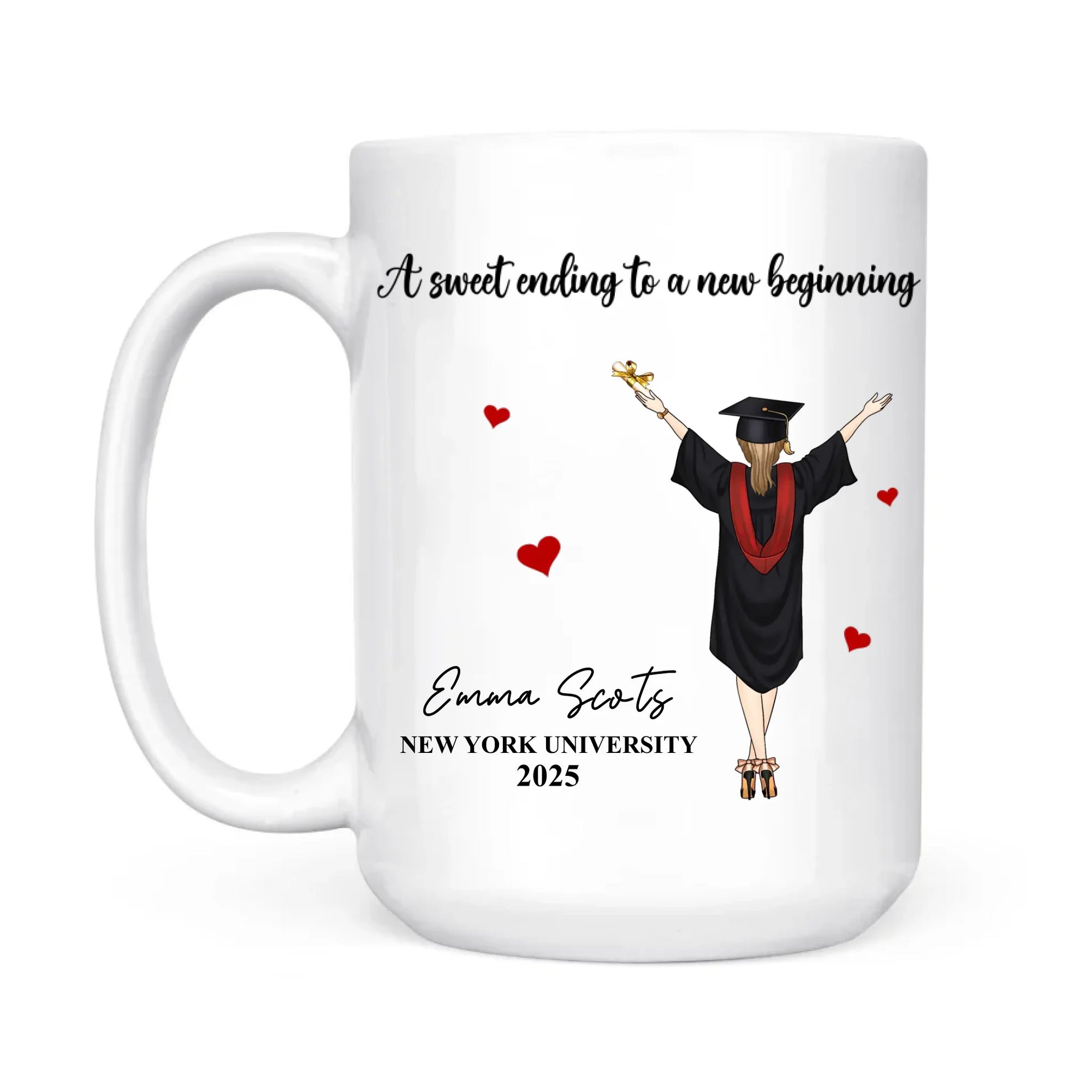 Sweet Ending To A New Beginning - Personalized Mug, Graduation Gift, Grad Mug, Class Of 2025