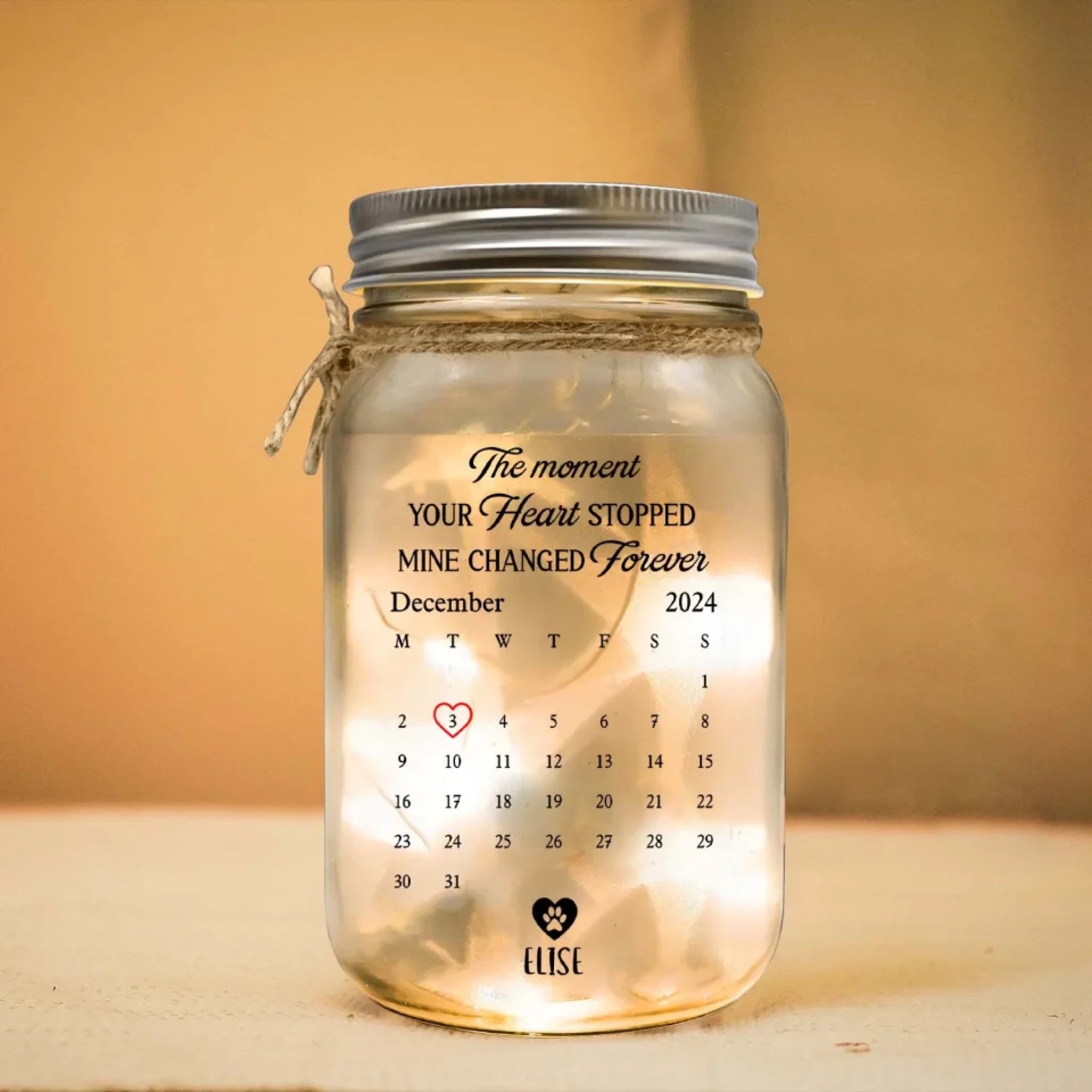 The Moment Your Heart Stopped Mine Changed Forever - Personalized Mason Jar Light, Gift For Dog Lover