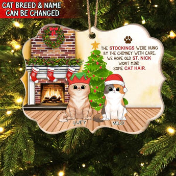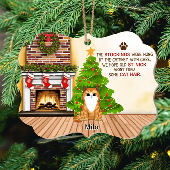The Stocking Were Hung Personalized Cat Christmas Wood Ornament, Custom Shaped Ornament