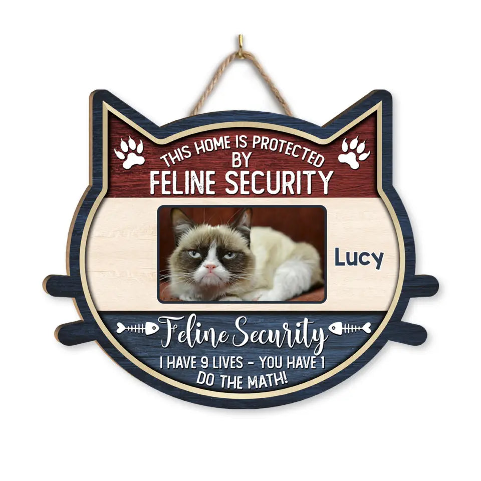 This Home Is Protected By Security - Personalized Wood Sign, Gift For Cat Lovers