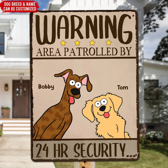 Explore our collection of personalized gifts and find the ideal way to combine protection with a touch of Personalization. Get your Warning Area Patrolled By 24hr Security Personalized Metal Sign now and let everyone know that your four-legged friend is a part of your vigilant security team.