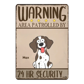Secure your space with our Personalized Metal Sign, designed to show that your area is patrolled by 24-hour security, including your loyal canine companion. This custom metal sign is the perfect gift for dog lovers who also prioritize security. Add a personal touch to your surroundings while showcasing your love for dogs and your commitment to safety.