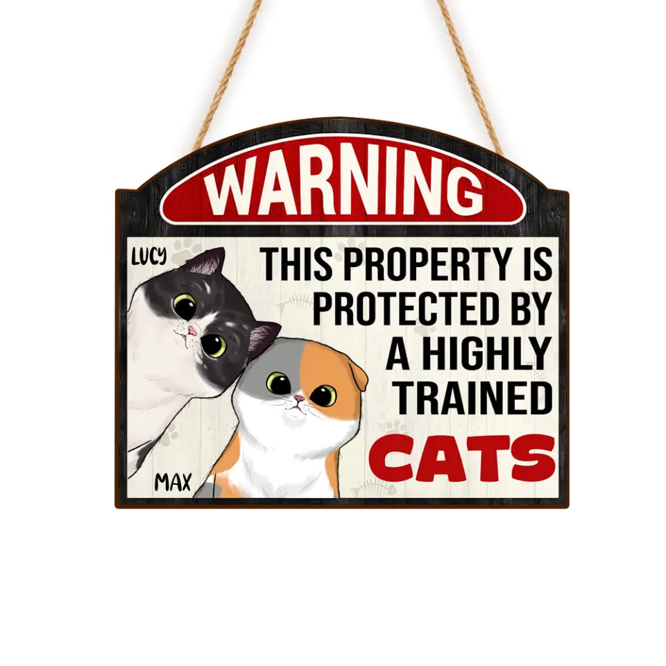 Warning This Property Is Protected By A Highly Trained Cat - Personalized Wood Sign, Gift For Cat Lovers
