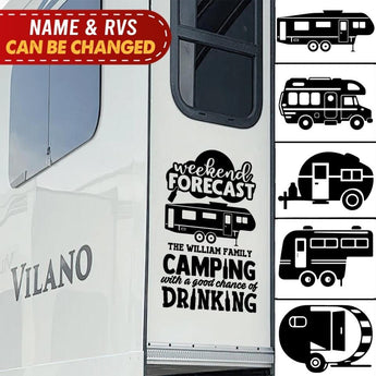 Weekend Forecast Camping With A Good Chance Of Drinking - Personalized Decal, Camping Decal
