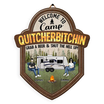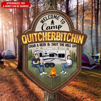Welcome To Camp Quitcherbitchin Grab a beer & Shut The Hell Up - Personalized Wood Sign, Gift For Camping Lover