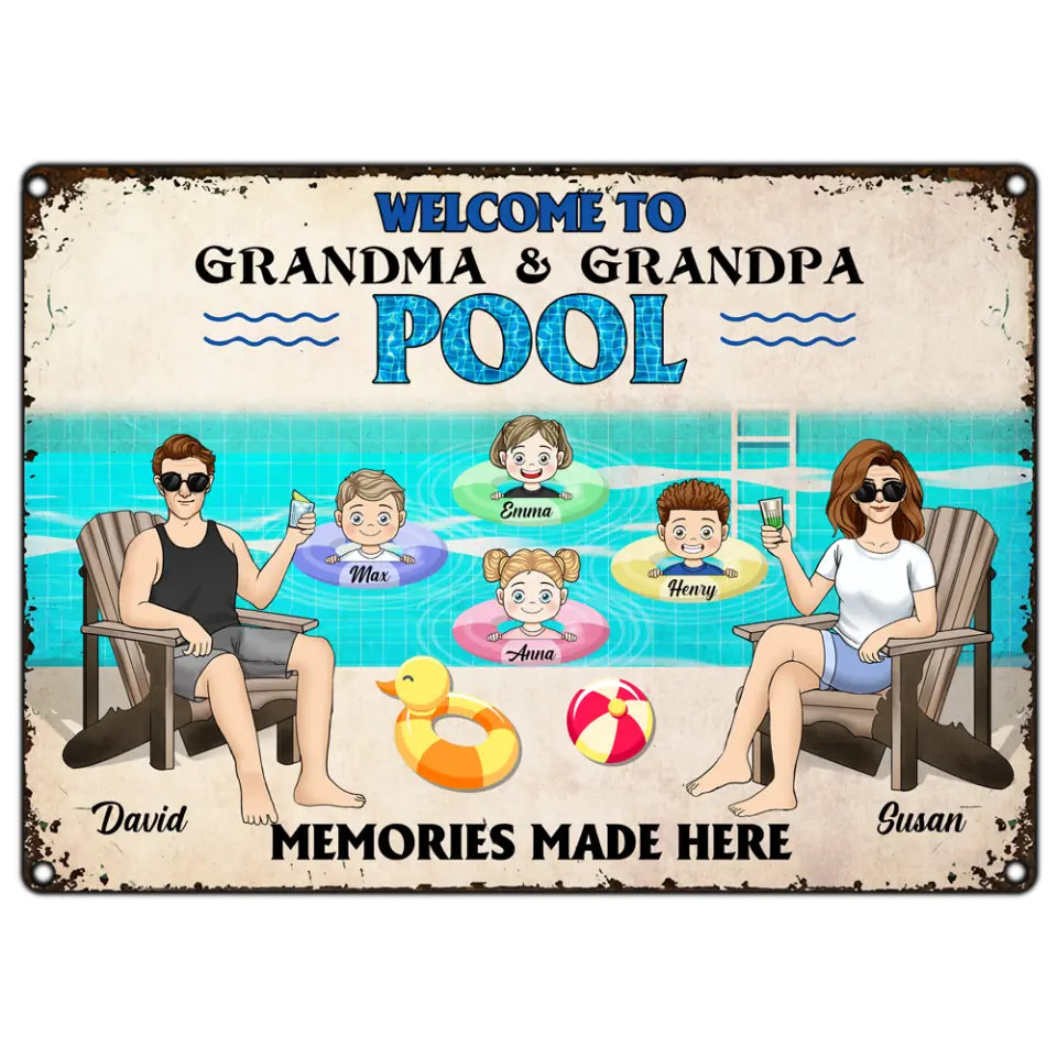 Welcome To Grandparents Pool With Grandkids - Personalized Metal Sign, Summer Gift For Family