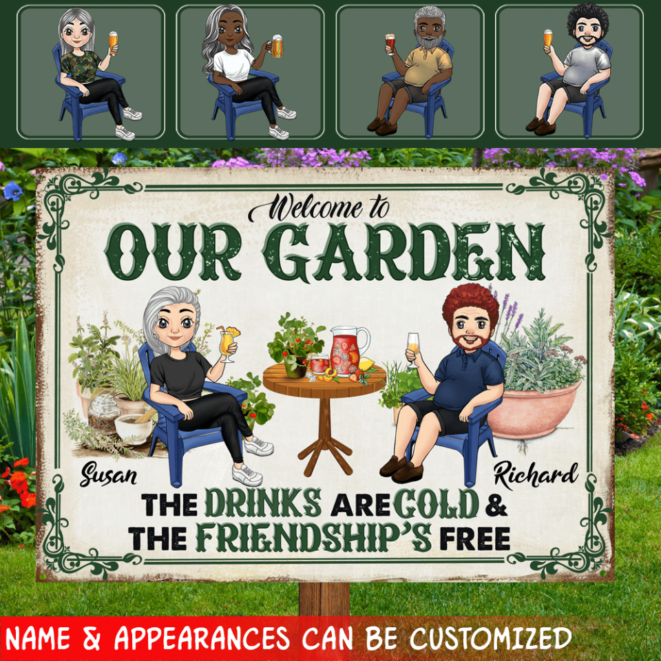 Welcome To Our Garden The Drinks Are Cold & The Friendship's Free - Personalized Metal Sign